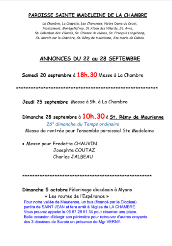 Paroisse catholique de La Chambre, La Chapelle, Les Chavannes en Maurienne, Montaimont, Montgellafrey, Notre Dame du Cruet, St Alban des Villards,